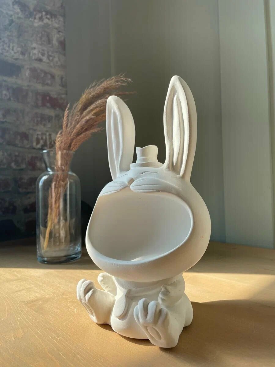 Очаровательная конфетница Зайка - легкий способ освежить сервировку и элегантно подать дома или в офисе, простые угощения. Ваза для конфет имеет оригинальный дизайн в Виде фигуры зайца , станет изюминкой Вашей кухни или офиса. Гипс экологически чистый материал, идеально для красивой сервировки конфет и фруктов, как стойка для десертов. Также можно использовать как органайзер для предметов. Конфетницы также можно использовать как подставки для мелочей, ключей. Заяц украсит ваш стол и подчеркнет прекрасный вкус хозяина, а также станет отличным подарком. Конфетница с кроликом идеально подходят для встречи гостей на ресепшене. Заказать данный товар можно по ссылке: https://ya.cc/m/HBYkdqN