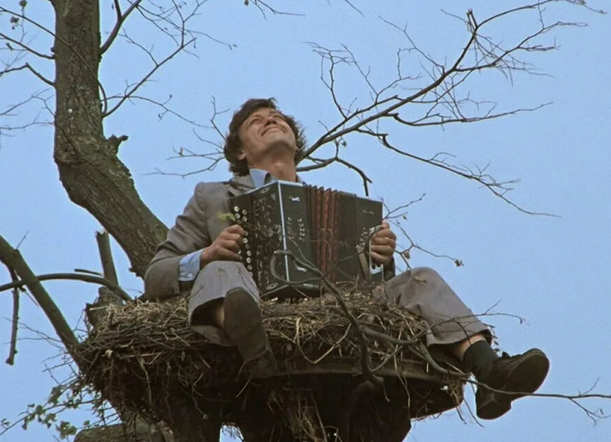 1. Артистам приходится сниматься в разных ситуациях. В каком фильме Николаю Караченцову пришлось забраться в гнездо аиста?