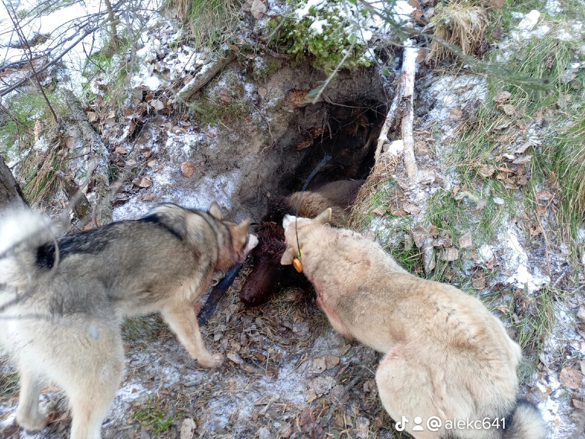 Вообще культура охоты на лося с лайкой предполагает охоту не шумную, а осторожную, лучше всего одного человека. Зверовщики Урала и Сибири для бесшумного скрадывания зверя, облаеваемого лайкой, иногда пользуются меховыми чулками, которые до ответственного момента носят в заплечных крошнах, понягах или просто за пазухой. (Примечание: чулки шьются, как правило, из шкур собак, которые плохо работали или которые хотели попробовать хватками остановить сохатого). Вообще не нужно часто употреблять слово "хватка". У лайки очень здоровый инстинкт самосохранения - это ее один из породных признаков. Обычно лайка бросается на зверя делать "хватки" после выстрела, т.к. она всегда уверена в том, что выстрел поражает зверя, она, видимо, не может понять, что бывают выстрелы, совершенно не причиняющие вреда зверю. Говоря о поведении лося при встрече с собакой, опытные охотники приходят к мнению, что лось не очень боится собаки, если только не замечает, что она в "компании" с человеком.
