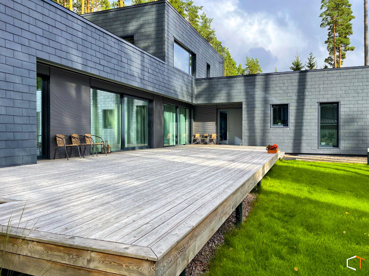 Представляем вам деревянную террасу, выполненную из натуральной лиственницы, которая не обработана маслом и не требует специального ухода. Состояние террасы после 5 лет использования может дать представление о долгосрочной устойчивости и надежности материалов. После 5 лет использования наблюдается деформация стыков под углом 45 градусов, однако общая эстетика террасы сохранена. Это свидетельствует о том, что несмотря на естественное старение материала, терраса все еще выглядит привлекательно и подходит для использования. Время от времени можно обнаружить незначительную ржавчину на саморезах, в данном случае это не критично для качества и функциональности. При строительстве террасы рекомендуем использовать саморезы из нержавеющей стали. Таким образом, состояние террасы после 5 лет использования указывает на долговечность древесины лиственницы и необходимость проведения небольших ремонтных работ для поддержания ее в хорошем состоянии. Проблемы с террасой могут вызвать недопустимый диском