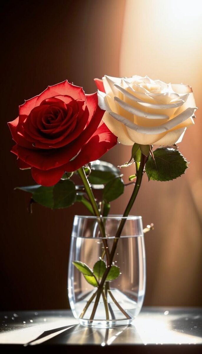 На маленьком столике слева от двери, рядом с которым валяется опрокинутое кресло, стоит ваза из простого стекла на одну треть заполненная водой.
