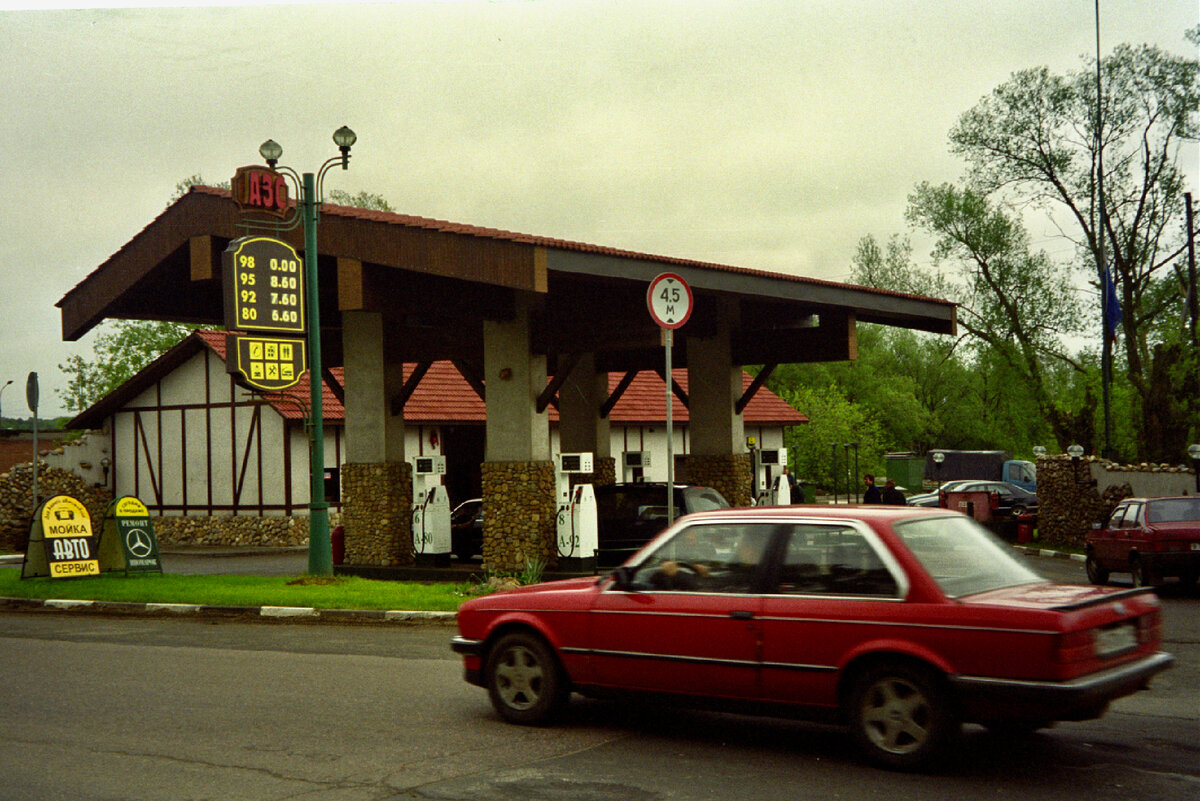 Я оцифровал ещё несколько плёнок из домашних фотоальбомов. Отсняты они были во второй половине девяностых и в самом начале двухтысячных. Заправка «Jet Petroleum” в деревне Жилино неподалёку от Люберец. Снято до 2003-го года. Заправка до сих пор на месте, но перекрашена в коричневый цвет. И собственник другой. А ещё вместо фонарного столба с ценами стоит стандартная стела. Ну и само собой цены на топливо значительно выросли. Вместо сарая с покрытой рубероидом крышей стоят коттеджи из коричневого кирпича. Троицкий собор Псковского Крома в 1999-м году. В данном случае изменения минимальны: убрали фонарный столб и покрасили металлические листы на контрфорсах в зелёный цвет. Вид на поля и леса близ Городищенского озера в 1999-м году. Это в Изборске. Однообразная красота русских равнин. Единственная перемена с тех пор - у дома поменяли кровлю. Батуты в Парке Горького в 1996-м году. Теперь такое там и представить невозможно. Парк превратился в стильное и пафосное место отдыха. Мрачные окрес