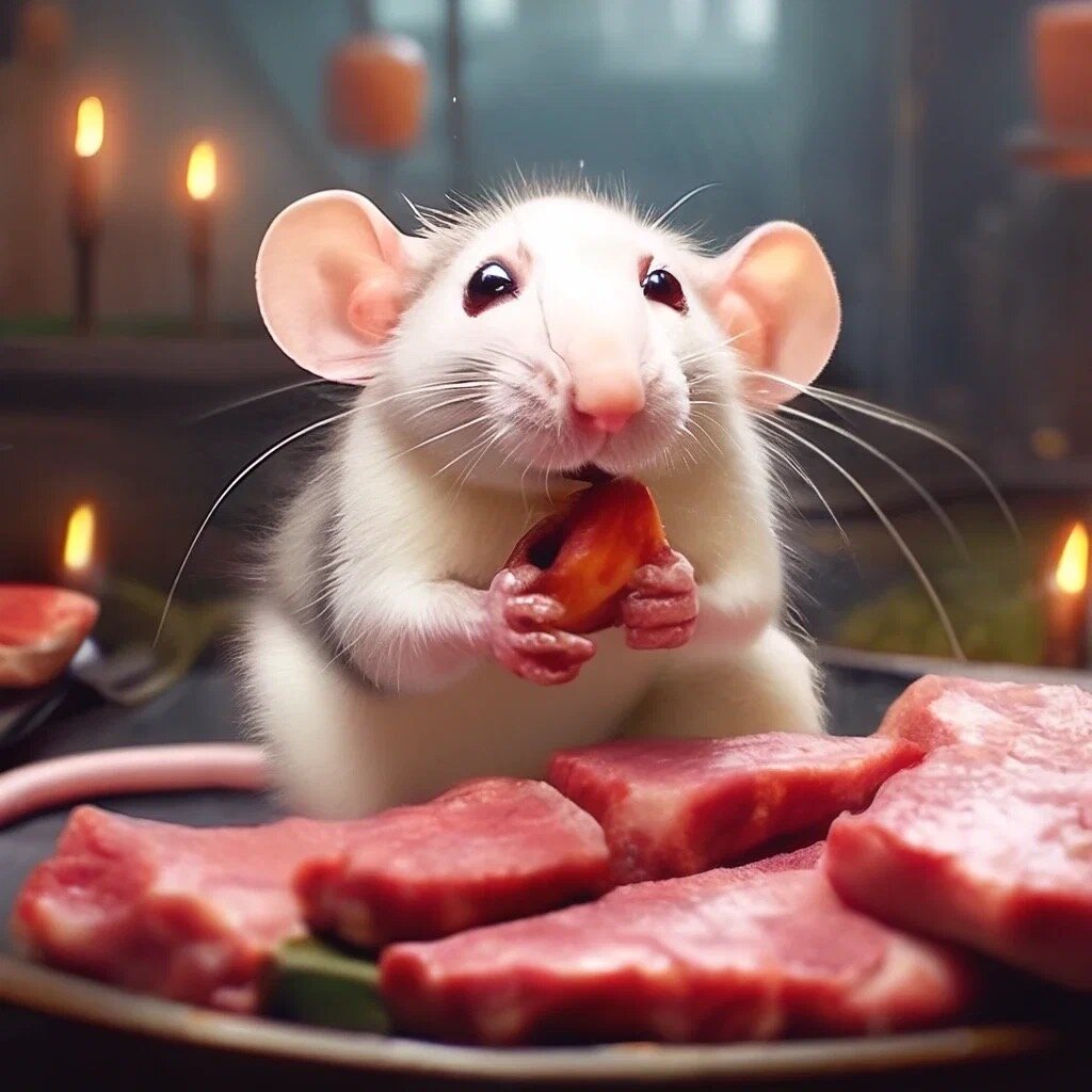 Доброго времени суток!) Когда я содержала крыс в детстве, тогда не было интернета, блогеров, форумов. Мне казалось что крысам достаточно корма, купленного в зоомагазинах. Думала там все нужное для них есть, иногда только баловала их овощами. То что крысам нужно давать мясо, об этом я не знала. Я думала что домашние крыски от него будут кусаться, но это далеко не так. А корма в зоомагазинах зачастую не содержат животного белка, необходимого для крыс. Вообще многие производители кормов считают крыс за лошадь и в составе чаще всего один овес. Поэтому сейчас даю белок отдельно в качестве прикорма. Вообще правильный рацион крыс гораздо сложнее, чем мне казалось. Он состоит из: Вообщем по этой таблице можно понять что крысам белок необходим 2 раза в неделю. Что даю я своим крыскам? Это вареное мясо курицы без соли и специй, вареные креветки, вареная говядина. Из мяса крысам нельзя давать свинину (она слишком жирная). В качестве лакомства использую гаммарус и мучного червя. Иногда замешиваю