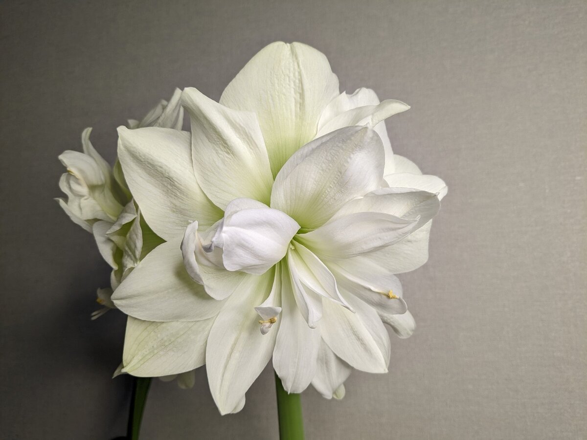 Собрала на подоконнике зимней квартиры шесть махровых сортов гиппеаструмов, которые никак не хотят цвести "хором", а ведь могли бы дать мне эпическую картинку. Но, с другой стороны, пусть цветут как хотят - и "сольно", и "дуэтами", лишь бы цвели! А то ведь многие имеют у себя дома одни только листья и годами не видят цветов. Выводить свои гиппеаструмы из состояния покоя я начала в середине ноября, одномоментно рассадив все луковицы без листьев по горшкам. В абсолютно одинаковые условия - каждому сорту по отдельному четырехлитровому техническому горшку. Рассчитывала массовое на цветение в Новогодье, но гиппеаструмы над моей садовой самоуверенностью похихикали и начали расти кто во что горазд. Так сорт Elvas одной стрелкой процвел в декабре, а второй - в Рождество. В гордом одиночестве. Гиппеаструмы Double Dragon и Double Dream собрались цвести ближе к концу января и сейчас надувают свои стрелы - там отросло пока сантиметров 30 и процесс продолжается. А сорта Marilyn и Exotic Nymph цвету
