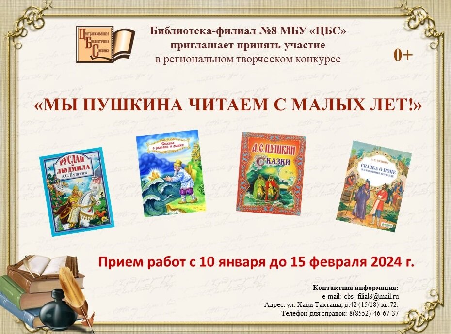 Подробная информация на нашем сайте: https://библиотека-челны.рф/konkursy-i-akcii/regionalnyj-tvorcheskij-konkurs-my-pushkina-chitaem-s-malyh-let-0