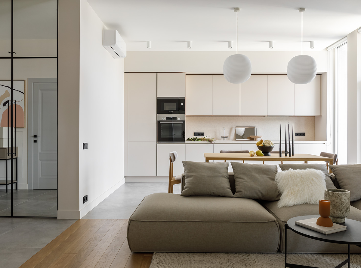 Каждую зону или комнату следует наделить четко обозначенной функцией. Кухня должна выглядеть как кухня, спальня как спальня, а прихожая — как прихожая. В ином случае впечатление покупателя или арендатора будет смазано. Зонирование легко организовать при помощи корпусной мебели (например, от фабрики «Мария») и межкомнатных перегородок (подходящие варианты есть у бренда SOFIA). Продвинутые хоумстейджеры, кстати, могут выполнить зонирование не только при помощи мебели и разделителей пространства, но и за счет подбора разных сочетаний краски — цветов и фактур.