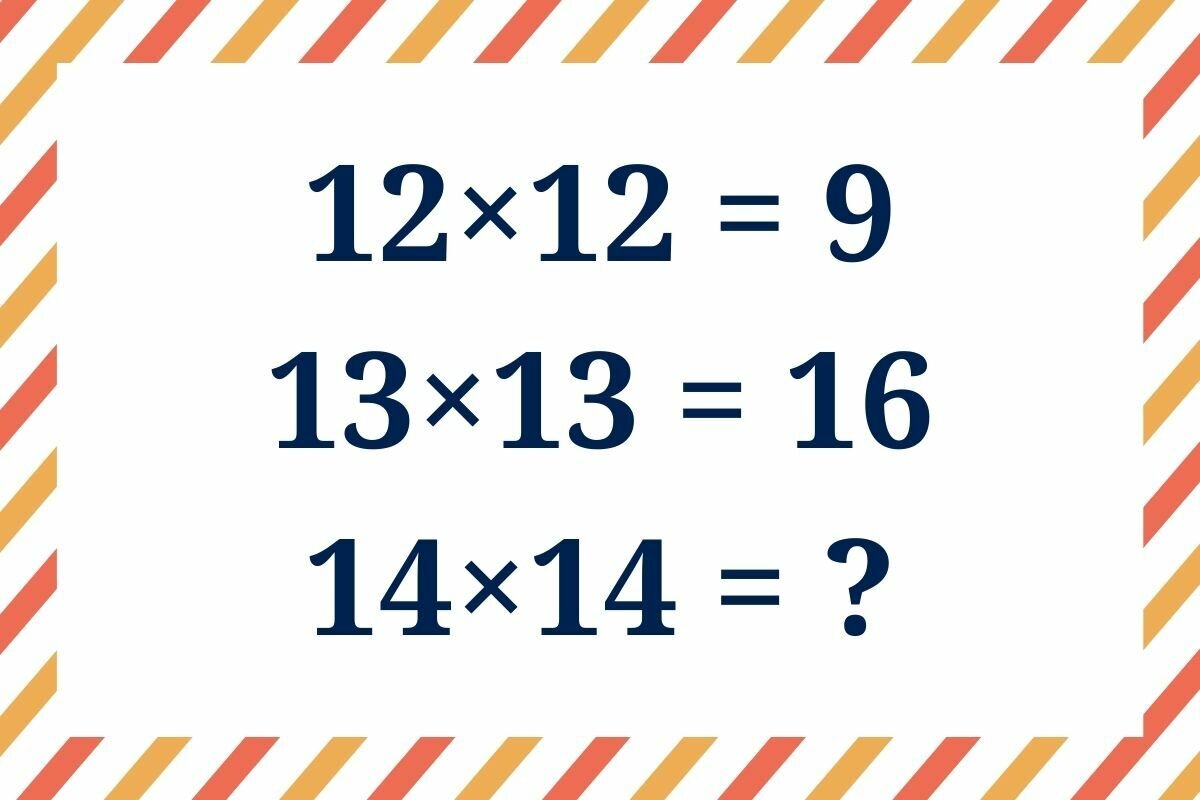 Для многих математика остается неприятным воспоминанием из школьных времен. Такие задачи могут быть настолько сложными, что даже взрослые рвут на себе волосы. Тем не менее, это неплохой способом провести свободное время. Эту головоломку смогут решить не все. А вы справитесь? Читайте также: Эта головоломка с животными может заставить кипеть мозг у 50% людей. А вы сможете решить? Эта загадка уже давно стала одним из хитов среди математических онлайн-игр. Ваша задача — определить правильный ответ на уравнение 14х14 по схеме, приведенной на картинке. Вам кажется, что это просто? Лишь немногие смогут определить правильный ответ. Проверьте, насколько быстро вы сможете найти решение. Ответ вы найдете ниже. ... Продолжение читайте тут. (Или тут.) Читайте также: Даже калькулятор отвечает неправильно? Попробуйте решить эту простую задачу