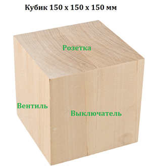 В связи с этим я подумал, что можно сделать подобную игрушку своими рука, из того, что валяется на чердаке или подвале. И вот я начал собирать детали для создания своего первого бизи-борда. Так как хотелось его сделать компактным, за основание был взят деревянный кубик 150 мм. Это может быть, как готовый кубик, так это может быть и кусок отпиленного от бруса, подходящего размера, или он может быть собран из 3-х кусков доски 150 х 50 мм, в зависимости от того какие материалы под рукой. После этого кубик необходимо отшлифовать и убрать все неровности и острые углы. Затем необходимо визуально разместить элементы на сторонах.