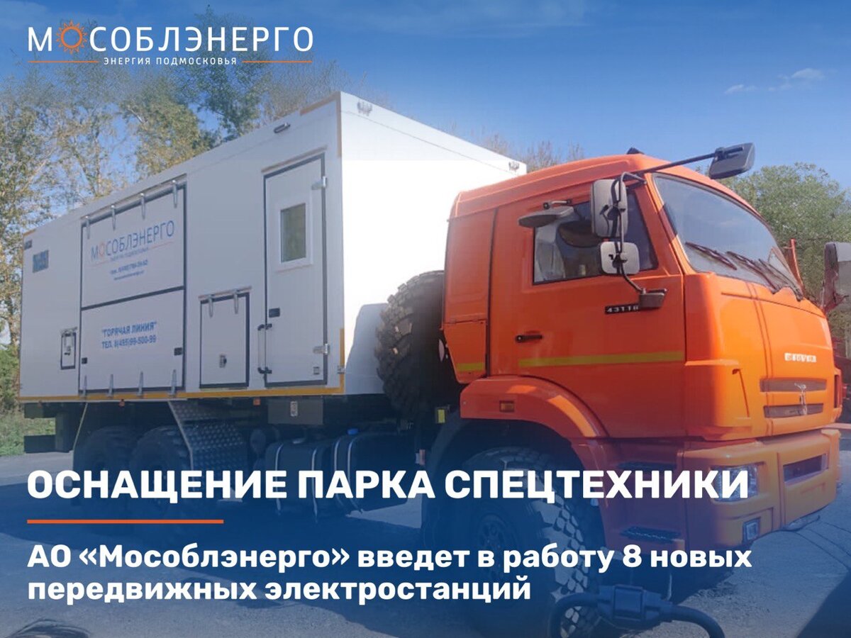 АО «Мособлэнерго» в 2024 году введет в работу 8 новых передвижных электростанций мощностью 400 и 500 кВт. Приобретение ПЭС позволяет компании равномерно распределить технику по филиалам АО «Мособлэнерго» и при возникновении технологических нарушений в пределах 1 часа обеспечить установку станций для возобновления электроснабжения потребителей.