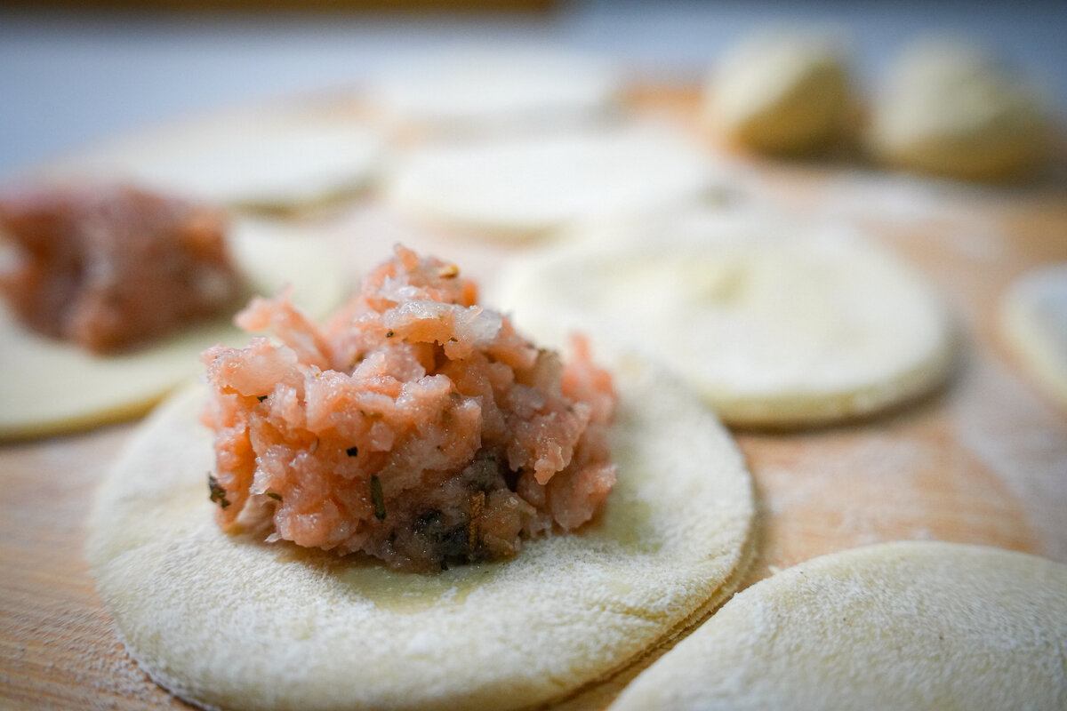 Так неоднократно мне писали читатели из южных регионов во всех моих блогах под публикациями о варениках. Я делаю обычное тесто — на воде или молоке. И отвариваю в кипящей воде. Вареники на пару я не пробовала. И уж очень мне стало любопытно, что же в них такого, что столько восторженных отзывов я от всех слышу. Нашла в интернете рецепт теста на кефире. Готовится оно с содой. А отвариваются такие изделия на пару, за счет этого становятся воздушными и пышными. Для начинки взяла своё прошлогоднее изобретение: бланшированную горькую редьку, филе горбуши, молотый перец и лук. Очень люблю это сочетание — сочная редька отлично дружит с рыбой. Тесто на кефире с содой и яйцами взяла в сети, оно у всех хозяек примерно одинаковое, различается минимально. Лепила двумя способами — обычным и "косичкой". В интернете тоже все по-разному лепят. Я люблю теста с краешков побольше, а вы? Отваривала на пару. Ну что сказать? Тесто действительно воздушнее и пышнее обычного. Вкусно. НО! Есть два момента, ко