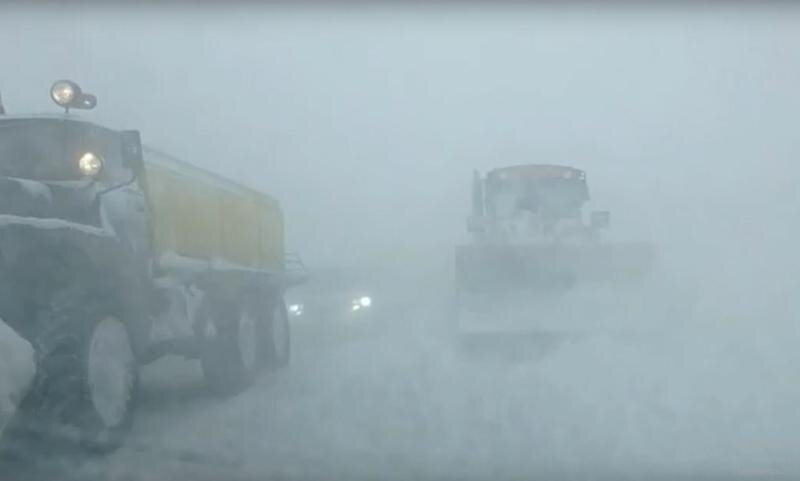 За пеленой снега не видно машину: такую уборку снега мы, пожалуй, не видели. Видео