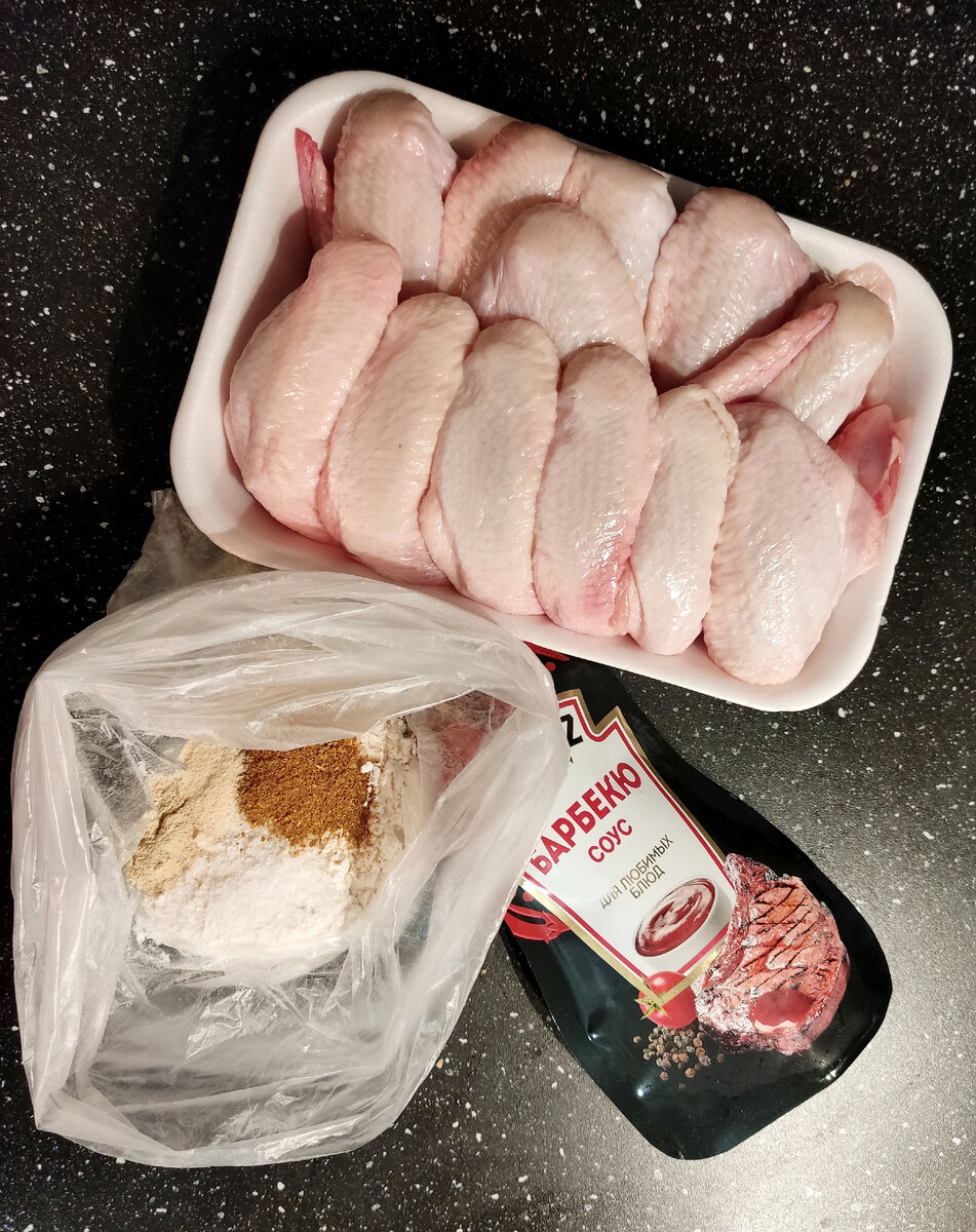 Это «блюдо» впервые попробовала в пивном ресторане «Колбасоф». Как меня туда занесло уже и не помню, но попробовав однажды там эти крылышки влюбилась в них навсегда ☺️ Сомневаюсь что их там готовят так же как я, но вкус почти один в один 👌🏻 Готовить просто и быстро. Нам понадобится: Специи выбирайте на свой вкус, можно например добавить чили и они будут острыми, или наоборот не добавлять ничего кроме соли. Крылышки разделываем на три части по суставам Нам понадобятся только плечо и предплечье (интересно у кур это так называется 🤔) Тоненькую часть без мяса в это блюдо не берем. Можно из них сварить бульон. Пригодится. Муку, соль и специи складываем в пакет, перемешиваем. Туда же в пакет складываем крылья. Пакет закручиваем и хорошенько всё трясём, так чтобы каждое крылышко было в панировке. На противень стелим пергамент И раскладываем наши крылья Ну не наши конечно, куриные 😉 Ставим в духовку, на середину, на 180°С, желательно с режимом конвекции Приблизительно на 35-40 минут. Г