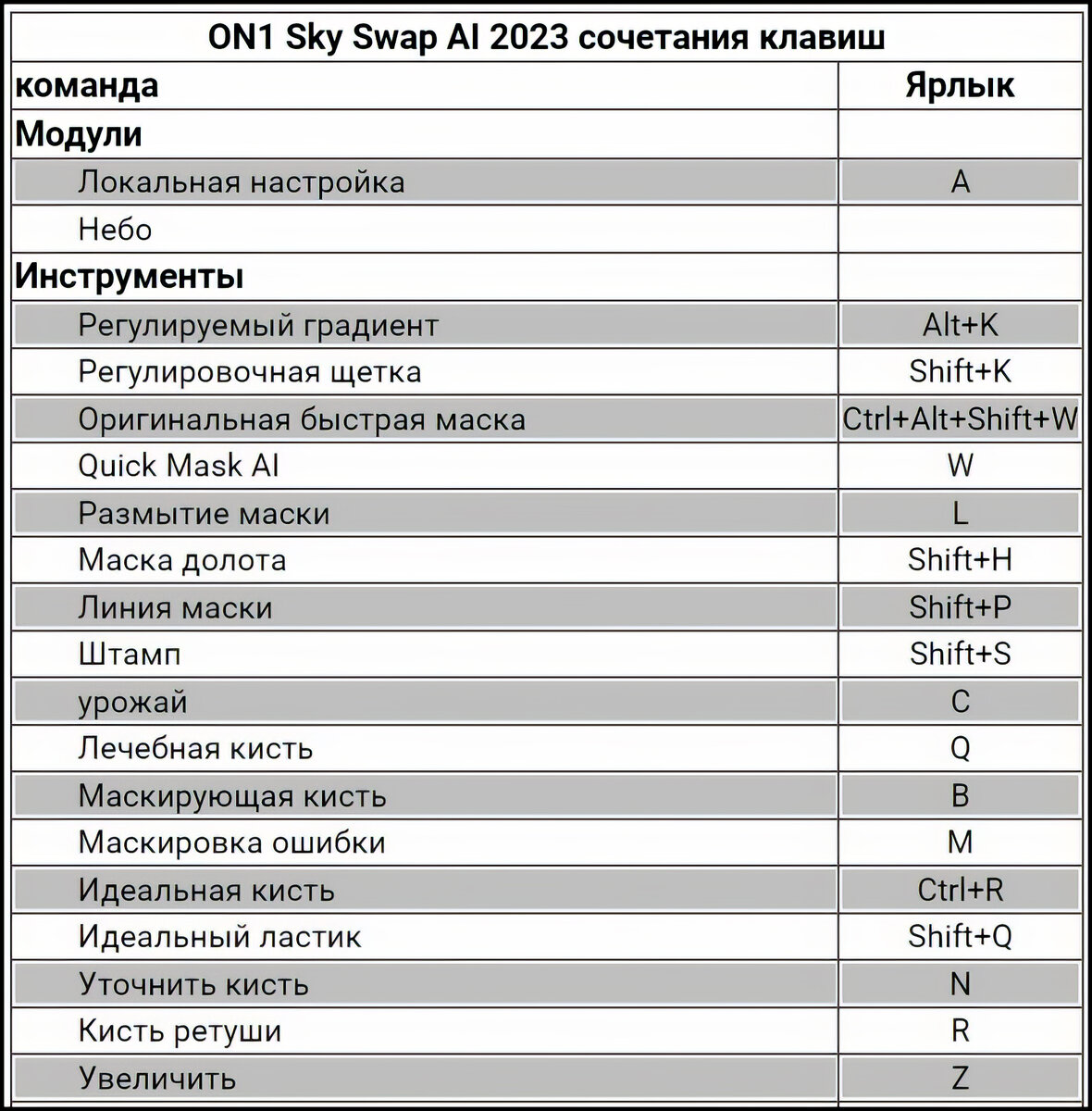 В Sky Swap AI довольно много горячих клавиш, помогающих ускорить работу в программе.