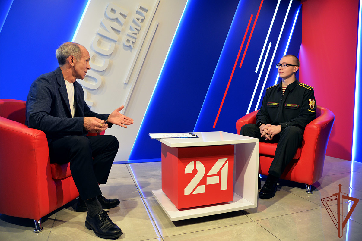 Встреча с будущим офицером продолжила цикл тематических телепередач, знакомящих северян с ведомственными военными вузами Росгвардии и возможностью поступления в них.
