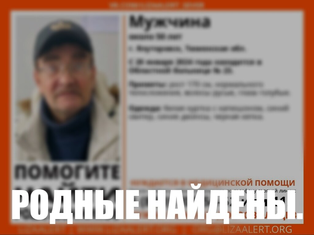 Недавно мы публиковали ориентировку на мужчину, который потерял память. Оказалось, что родная сестра разыскивает его уже 15 лет. Рассказываем невероятную историю из Тюменской области. Так, 22 января поисковики «ЛизаАлерт» получили следующую информацию: в 23-ей областной больнице в городе Ялуторовске находится пожилой человек, который потерял память (не помнил ничего – ни имени, ни адреса проживания, ни родных). Выяснилось, что он ехал в автобусе, подошел к водителю и рассказал о своей проблеме. Тот не остался равнодушным к чужой беде и вызвал на место соответствующие службы. – К вечеру мы уже знаем, что мужчину зовут Андрей, ему 53 года, знаем его номер телефона, а также нам известно, что наш найденный занимается строительством и ремонтами. Утром 23 января получаем ключевое свидетельство. В отряд позвонил мужчина и опознал в нашем «неизвестном» своего квартиросъемщика, – сообщили в «ЛизеАлерт». Позже поисковики выяснили, что мужчина проживает в селе Исетском, а родом из Кировской облас