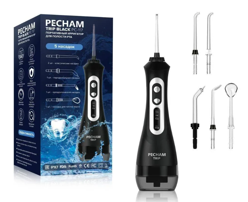 После первого опыта использования ирригатора невозможно представить себе ежедневную гигиену без этого устройства. Элегантный и удобный, ирригатор позволяет выбирать силу струи, что делает его ещё более привлекательным. Есть так же в белом цвете Я приобрела этот ирригатор взамен своего предыдущего, который сломался. Сначала меня привлек его стильный дизайн - черный ирригатор с голубым прозрачным отсеком для воды. Однако оказалось, что этот прибор не только красивый, но и имеет высокое качество, а также неожиданные функции.