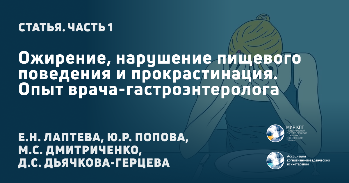 Ключевые слова: избыточная масса тела, ожирение, метаболический синдром, методы лечения ожирения, нарушение пищевого поведения, когнитивно-поведенческая психотерапия, прокрастинация.