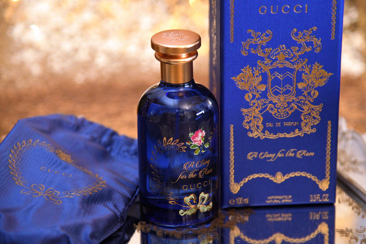 Gucci Alchemist'S Garden A Song For The Rose Eau de Parfum Приветствую вас! Хочу поделиться своим новым, и пожалуй, самым красивым флаконом в моей коллекции. Купила сие чудо в Рив Гош, прошел и промокод. Этот флакон настолько красив, что не передать на фото. Но я сделала много фоточек. Как распаковка, начиная со снятия слюды. Коробка из очень плотного картона. Внутри покоится флакон в мешочке. Очень мило это смотрится. Так выглядит мешочек, завязанный. И вот появляется золотая крышка. На ней выгравирована роза. Главная виновница этой песни. Ну и весь комплект. Золотыми буквами расписана коробочка. Все сверкает. Стекло такое яркое, синего цвета. Очень выгодное сочетание королевского синего с позолотой. Ну, а теперь, о самом главном. Чем пахнет этот красавец. У меня много роз в коллекции, и от Курджана и от Аткинсона . Но эта особенная. Как только нанесла , как тут же переместилась в детство. Особых ароматов тогда не было. И цветущий шиповник был верхом парфюмерного наслаждения. Здесь ч