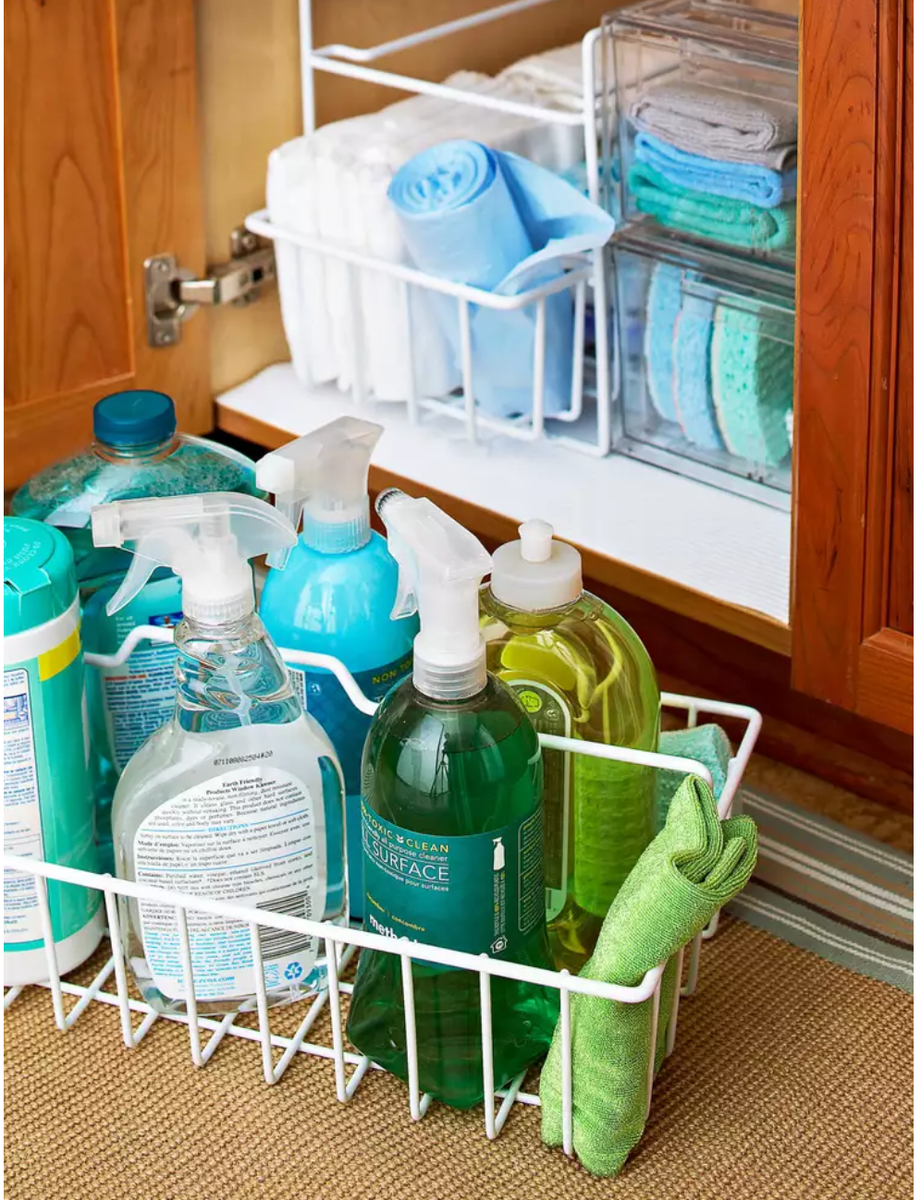 Пространство под раковиной не очень большое и не самое удобное, но, как правило, именно оно берет на себя основной удар по хранению всего арсенала бытовой химии в доме, всевозможных хозяйственных предметов, магазинных пакетов и других всевозможных вещей. И хотя такой вариант хранения кажется очень разумным и является довольно привычным, есть некоторые категории, которые следует убрать оттуда. 1. Абсолютно все чистящие и моющие средства и химикаты На каждой бутылочке такого средства есть особые рекомендации по хранению, которые редко кто соблюдает. Дело в том, что если бутылки и ёмкости вскрыты, то даже из под плотно закрученной крышки происходит выделение очень агрессивных химических средств. Ну а если какое-либо средство протекает, это может быть опасно и для поверхности шкафа и для вас, ведь мы вынуждены будем вдыхать смесь довольно вредных испарений каждый раз, открывая дверцу шкафа. А так как там зачастую находится и мусорное ведро, опасности подвергаются абсолютно все члены семьи.
