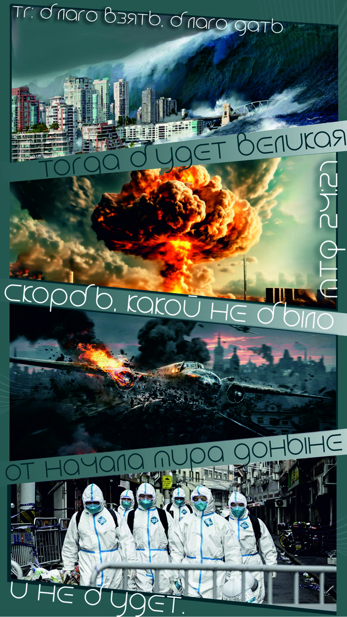 - ведь тогда будет великая скорбь, какой ещё не было с начала мира до сих пор, и никогда не будет. (Матф.24:21)