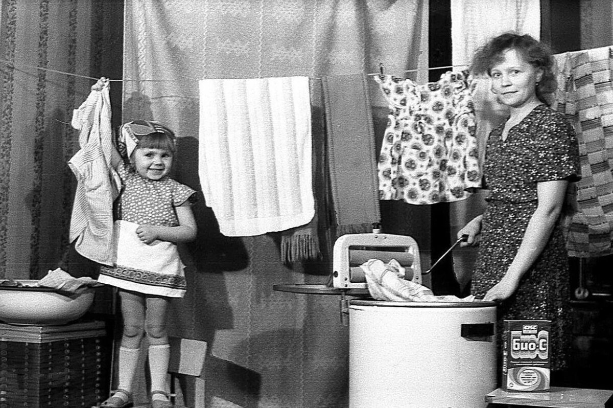 О том, как происходил процесс стирки у советских домохозяек, не имеющих стиральных машин, многие хорошо помнят до сих пор. Действительно, забыть эти баки для кипячения, деревянные щипцы для белья и тяжелый, влажный пар, заполняющий квартиру, наверное, невозможно.