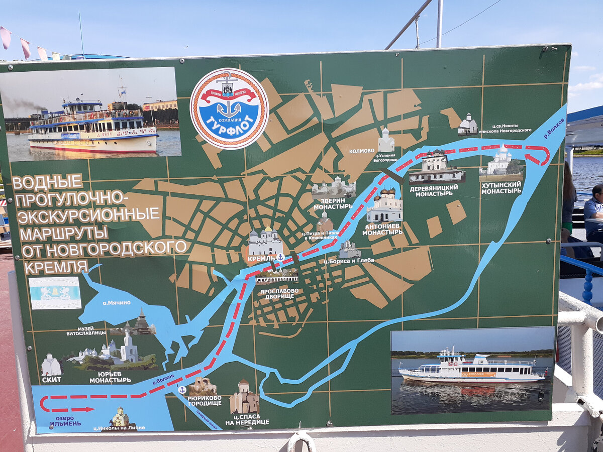 От Кремля по реке Волхов можно подняться на кораблике вверх или спуститься вниз к озеру Ильмень.