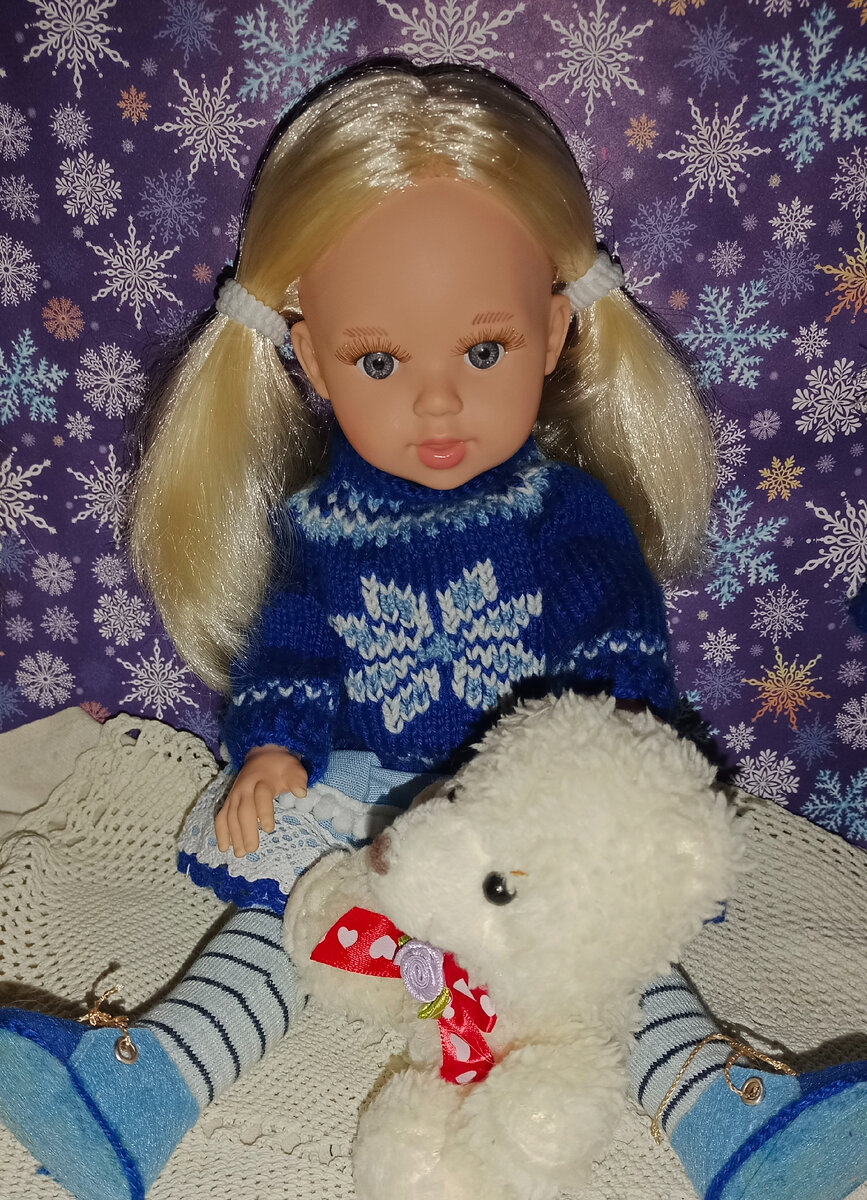 Долго любовалась этой куколкой, но покупать не спешила. Я собираю кукол формата "Подружки" Паола Рейна, а Марина в эту коллекцию не подходит. Хотя при заявленном росте 40 см она имеет лишь 38, но дружить может скорее с Сойками и другими куколками формата 40 см, которые меня не привлекают. Кроме того, я люблю куколок с нейтральным выражением личика, характерными никогда не интересовалась. Но все же сердце не выдержало. Ведь Марина изображает любознательную маленькую девочку, способную удивляться, восхищаться и радоваться всему на свете. Она ещё не утратила способность мечтать и верить в сказки, а происходящее вокруг воспринимать как чудо. Именно поэтому я решила поселить у себя это малейшее создание, а чтобы девочке не было одиноко, решила цикл сказок с участием других кукол назвать "Сказки для Марины". Ведь эта малышка может услышать волшебную историю везде: в свисте ветра, в шуме моря, шелесте деревьев или стуке капель дождя. Вот и сейчас снегирь ей что-то рассказывает.