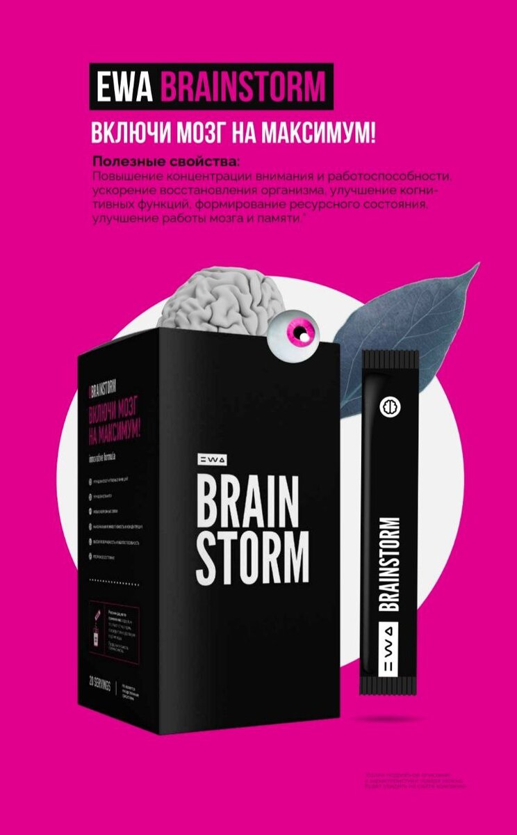 Сегодня расскажу вам БОМБОВУЮ информацию 🤩🤩🤩 Это новинка на рынке!!!!🔥🔥🔥 такого состава в продуктах ещё не было💥, те кто уже приобрёл и попробовал - мы самые первые😁👌🏻 🔥 Представляю вашему вниманию инновационный продукт для мозга от компании EWA PRODUCT 🤩🤩🤩 🧠🧠🧠Инновационная формула на основе натуральных компонентов, способна эффективно и безопасно раскрыть потенциал возможностей МОЗГА, значительно улучшая качество жизни и продуктивность каждого человека.🧠🧠🧠 BRAIN STORM открывает новые, безграничные возможности головного мозга, позволяет использо- вать по максимуму все его ресурсы: 👌Высокие достижения; 👌Активный мозг; 👌Уверенная память. 👉Помощник в принятии верных решений и генерации новых идей. 🔥Удобный формат: всегда под рукой и Приятный вкус. ✅Не вызывает привыкания / не содержит сахар / БЕЗ ГМО / логотип - 100% innovative natural active formula Форма выпуска: 20 стик-пакетов по 4,5 грамма Применение: 1 саше – пакет растворить в стакане воды комнатной