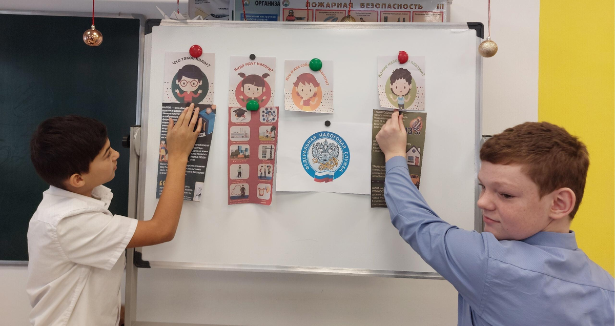 В начальной школе ученикам в игровой форме предстояло разобраться, откуда берутся деньги, кто должен платить налоги, на какие средства строятся школы, больницы и детские площадки. В ходе обсуждения школьники узнали, как благополучие государства зависит от уплаты налогов.