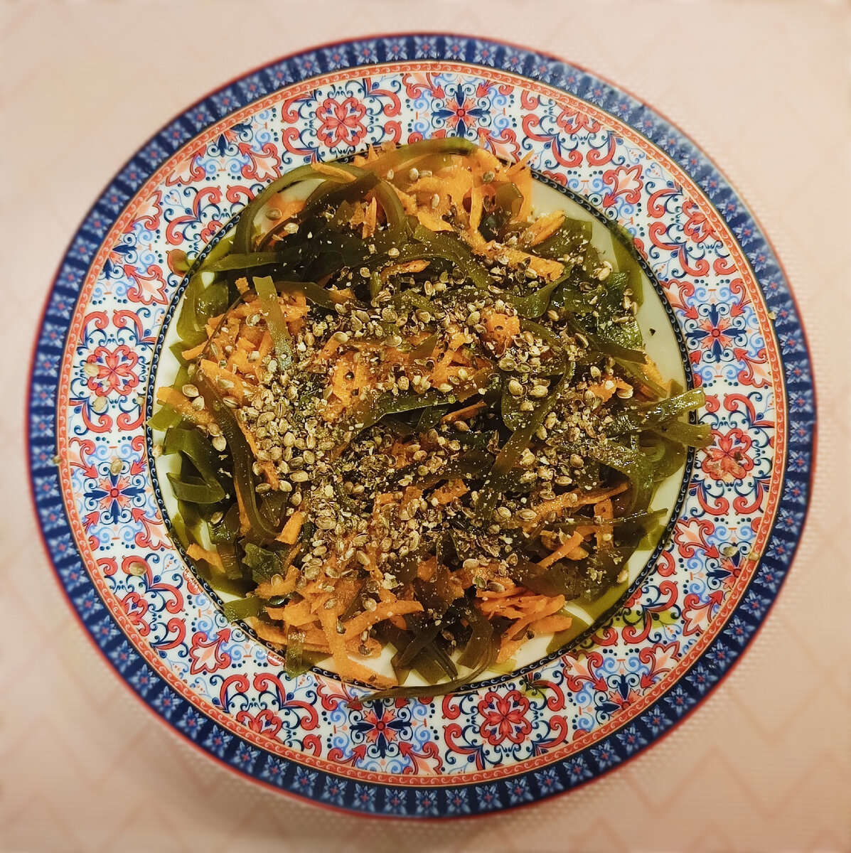 Всем привет! В качестве дополнения к прошлому посту: Предлагаю приготовить этот очень вкусный и полезный салат из ламинарии! Граммовки специально не пишу, т.к. всё зависит от объёма салата, который Вы хотите получить. Ингредиенты: Шаг 1. Залейте на минут 15 кипятком сушеную ламинарию. В это время натрите сырую морковь на терке. Шаг 2. Слейте воду, добавьте к ламинарии тертую морковь, масла, соевый соус и посыпьте салат семенами конопли. Всё готово! Приятного аппетита! 😁 Этот салат богат омега-3 за счёт горчичного масла, масла льна и конопляных семян, морковь богата бета-каротином, а ламинария хороший источник йода! Так что не только вкусно, но и очень полезно! 😉