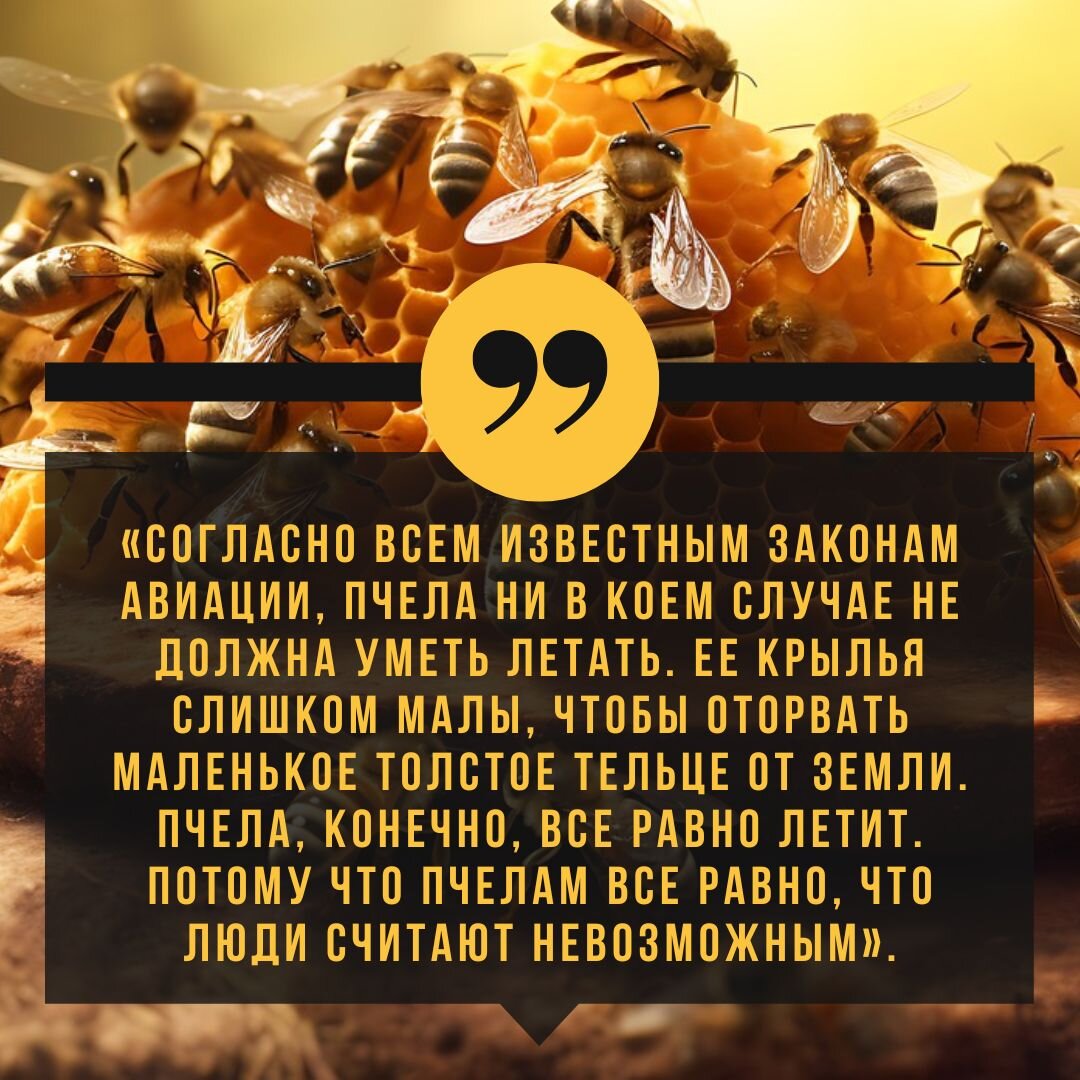 Читать всем, кому "обрезают крылья" и уверяют, что "рожденный ползать - летать не может". У Юлии Меньшовой мне сегодня попалась шикарная мотивирующая новость. Про пчел и шмелей. Которая больше про людей. Предыстория: в мультике "Би Муви: медовый заговор" (Bee Movie) (2007г.) прозвучала такая фраза: В 2010 году в космическом научном центре NASA был форум для школьников 5-12 классов, на котором выдающийся физик НАСА, Джулиан Мэнли Эрлз, немного "переработав" эту фразу, сказал ребятам: С тех пор по интернету бродит байка, что якобы в НАСА висит плакат с такой фразой: Принцип, который можно взять на вооружение: "НЕ ПРЕДНАЗНАЧЕНО - НЕ ЗНАЧИТ, НЕВОЗМОЖНО". Если в следующий раз, когда вам покажется, что вы чего-то не можете, вспомните про этих пчел. Будьте немного пчелами: ЗАБУДЬТЕ, что кто-то вам сказал, что ЭТО НЕВОЗМОЖНО, если это для вас ВАЖНО.