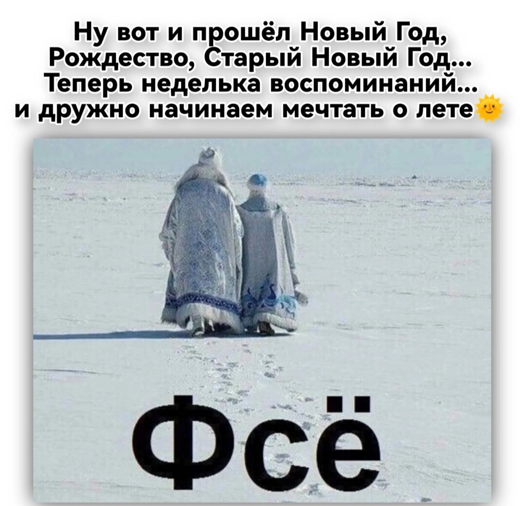 Всем приветик 🤗.Вот пролетела очередная череда праздников.Осталось только в прорубь нырнуть, отпраздновать Крещение и закрыть январь. Погода так ,,делает,, нервы,что уже дико хочется лета ,аж зубы сводит . Вчера утром минус, метель ,к вечеру плюс ,метель продолжается.Сегодня утром уже минус, опять метель,к обеду уже -15, ясно ,но ветер сильный.Ночью будет под -30,а завтра уже опять плюсовая и метель.Потом опять в морозы окунемся.Такие качели,что голову просто рвёт на части. Люди в магазине ищут уже летний товар.То ли погоду решили напугать ,то ли спешат сезон приблизить.Достала весну,пока щупают, интерес набивают.Особой торговли нет.Причин много( деньги,сезон, погода и далее по списку),но итог один - слабо.Ну, ничего ,я терпеливая оптимистка, подождём , скоро всё будет . Вчера дома убирала ёлку и декор.Можно было ещё до 20 подождать,но почему то решила убрать . Вчера в нашем городе произошел пожар,горел дом в частном секторе .Из окна нашего Т.Ц. его было видно.Зрелеще жуткое.Пожа