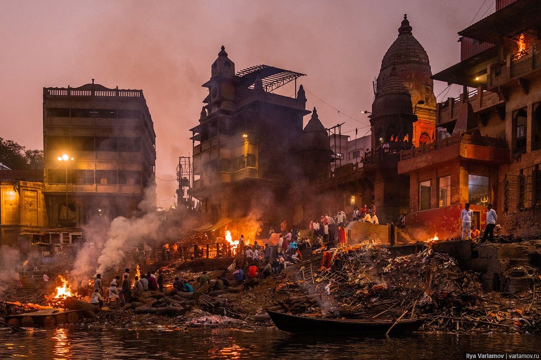 В Варанаси, древнем городе на берегах священной реки Ганг в Индии, смерть и жизнь переплетаются в уникальном культурном и духовном взаимодействии. Этот город, также известный как Банарас, считается одним из самых старых непрерывно обитаемых городов в мире и является важным религиозным центром для индуистов. В Варанаси смерть не считается концом, а скорее переходом в другое состояние, что делает его не просто местом паломничества, но и местом, где многие индусы стремятся провести свои последние дни. Согласно индуистским верованиям, умереть в Варанаси и быть кремированным на берегах Ганга означает освобождение души от цикла перерождений, известного как сансара. Это достижение мокши – окончательного освобождения от иллюзий мира и возвращения к божественному единству. Именно поэтому город притягивает стариков, монахов и паломников из всех уголков Индии, желающих найти здесь свой последний приют. В центре погребальных традиций Варанаси стоят гхаты – ступенчатые набережные, ведущие к водам Г