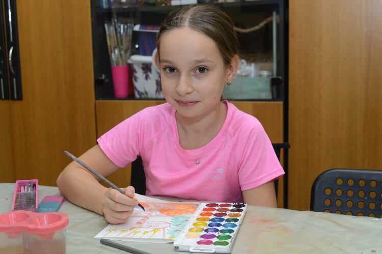 «Я рисую снеговика, все же были детьми.. надеюсь, воин улыбнется, – поделилась 10-летняя Алеся Пшеничная. – То, что мы делаем, очень важно, потому что мы сейчас дома, скоро у нас будет праздник, а они там воюют, им нужно помогать. Я бы хотела, чтобы мою открытку получил танкист, чтобы он прочитал её в танке».
