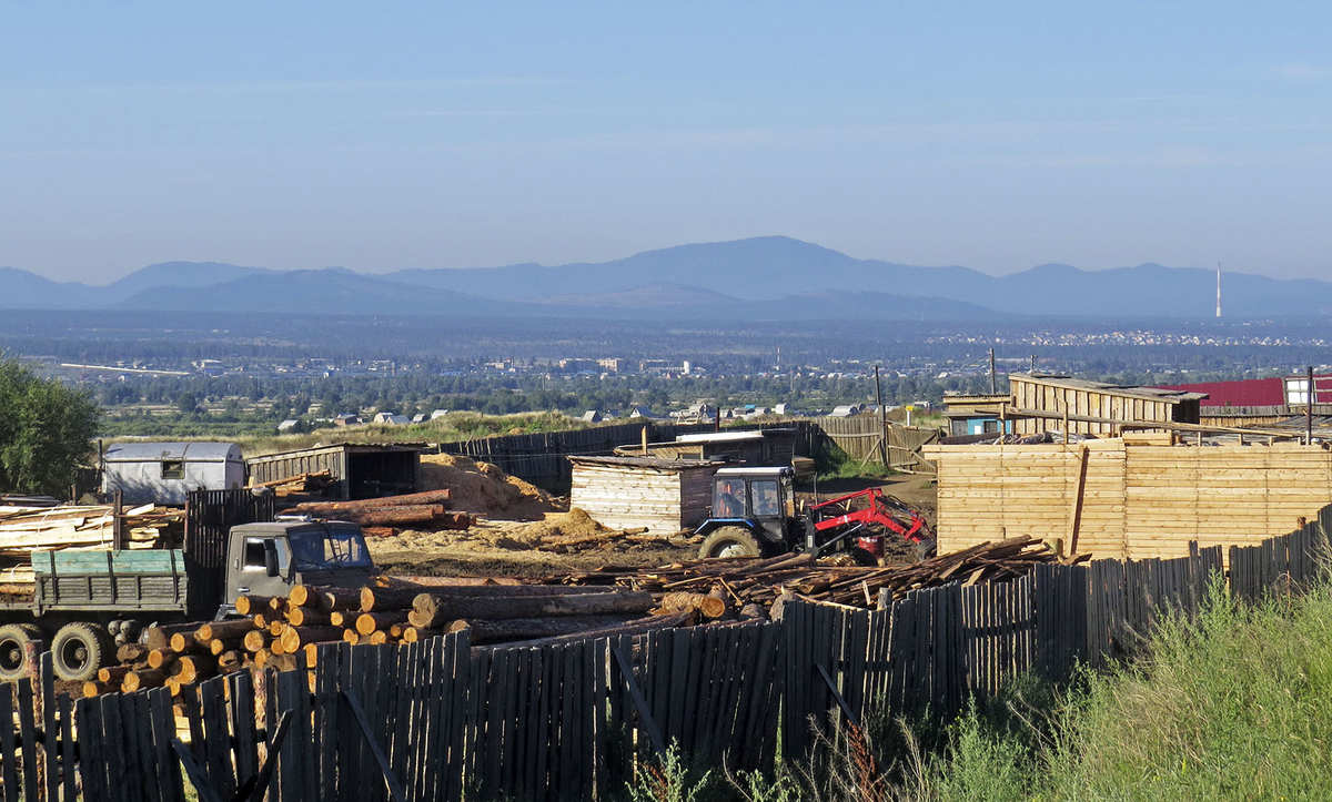 Но именно вдоль Старого Сибирского (для местных в прошлом Старомосковского) тракта, поглощёнными пригородными сёлами, уходит самый длинный ус городской застройки. По обеим берегам Уды, но левобережный Транссиб вскоре тоже сворачивает на юг, и лишь Читинский тракт упрямо уходит к северо-востоку. Мы долго ехали маршруткой до последнего предместья Эрхирик, села формально независимого (1,5 тыс. жит.) и преимущественного бурятского (75%). Вот так из него выглядит город: