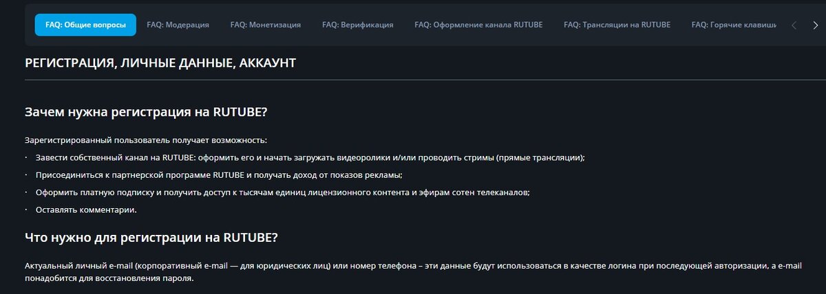 И это всё что там сказано о создании своего аккаунта в рутуб.