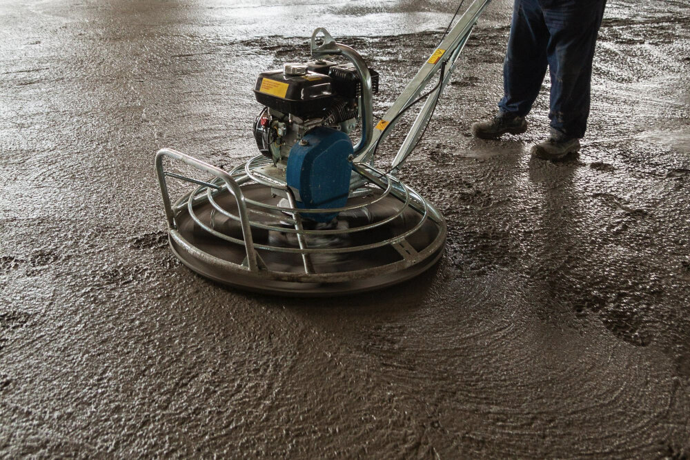 Удалить неровности и дефекты поверхности после заливки бетона поможет затирочная или мозаично-шлифовальная машина. В нашей статье кратко расскажем об этой технике и остановимся на оснастке, которая понадобится при работе с оборудованием. Какие машины применяют для затирки бетона Конструктивно затирочная или шлифовальная машина состоит из трех основных узлов. Это двигатель, рабочий блок и рукоятка с органами управления. Вращение двигателя с помощью ременного привода передается на редуктор, а с него — на шкив и рабочую оснастку. Насадка удаляет неровности, затирает и шлифует материал. Для большей безопасности рабочий узел закрывается защитным кожухом. Скорость вращения и угол наклона лопастей регулируются рычагами на управляющей рукоятке. Там же размещаются кнопки пуска и аварийного отключения. По типу двигателя выделяют электрические и бензиновые модели. В первом случае аппараты подключаются к сети 220 или 380 В. Это оборудование применяется в основном для работ в помещениях. Бензиновые
