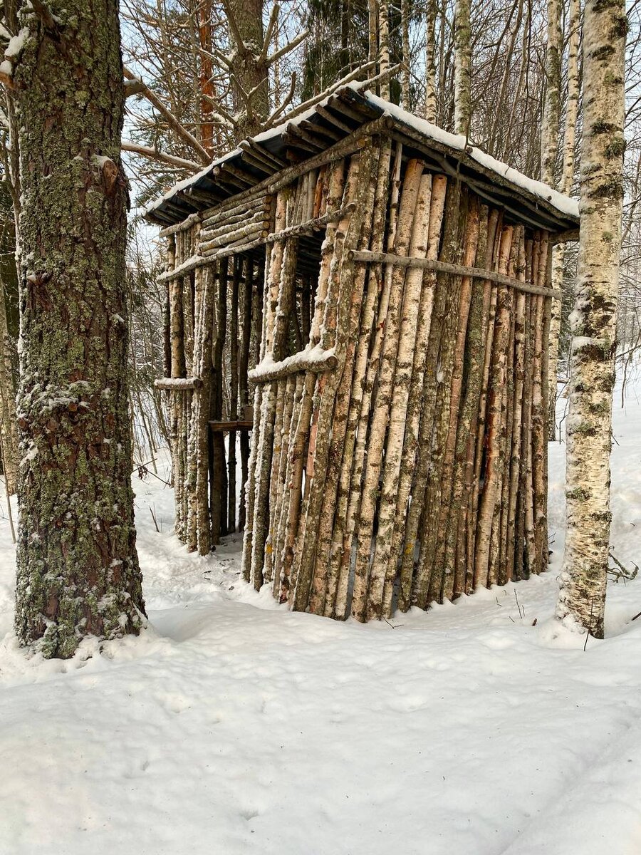 Идти до него было тяжело, так как снега было по колено. Нужно задуматься о покупке снегоступов у них выше манёвренность — в густом лесу, где на лыжах можно просто не развернуться среди деревьев.