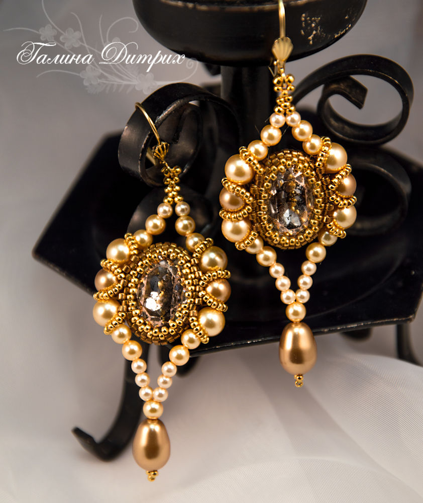 Друзья, эти серьги вдохновлены австрийскими кристаллами с эффектом патины. Я в них вижу старинные венецианские зеркала, которым мы в мастер-классе придадим достойную жемчужную раму от античного до светлого золота.