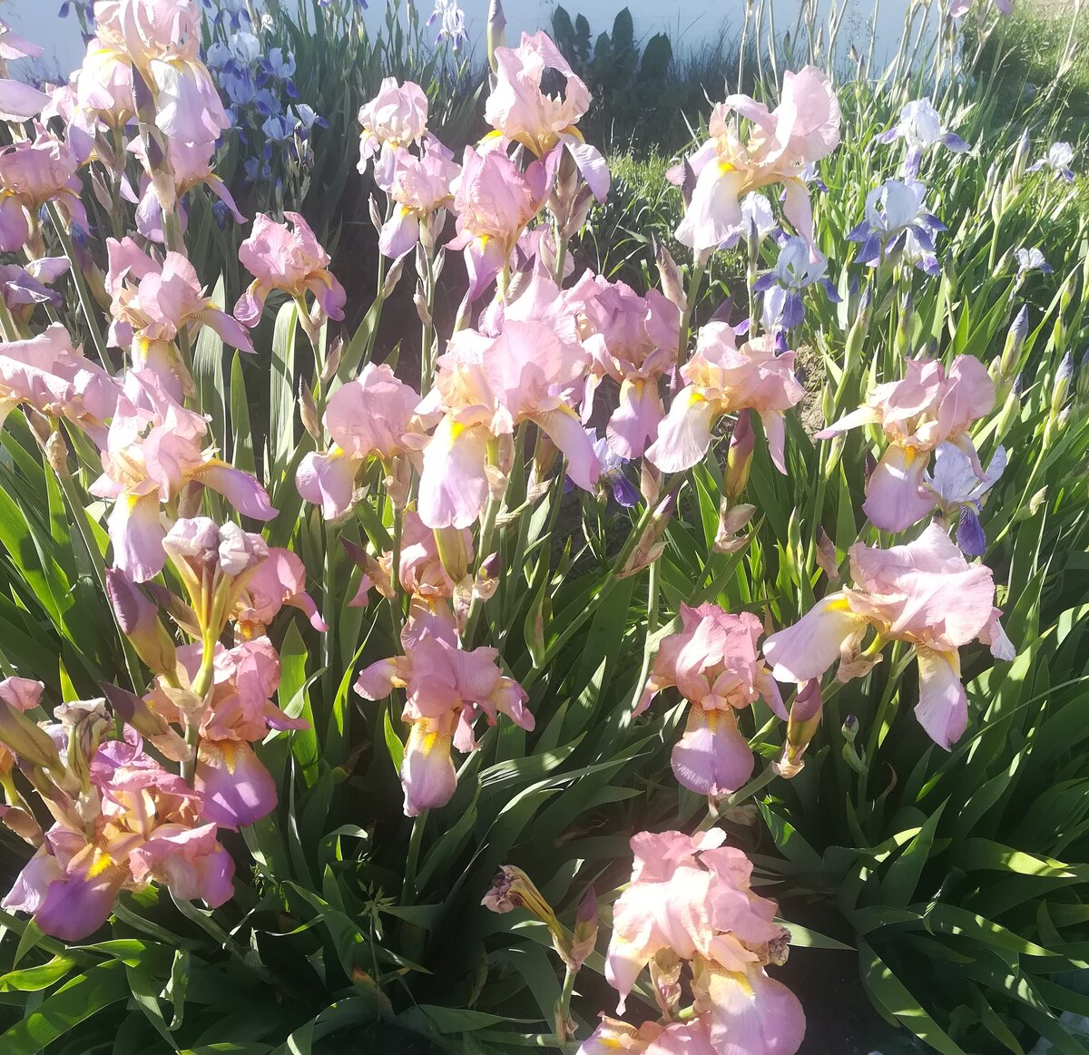 Признаюсь как на духу: тему этой статьи я "угнала" у одного известного блогера. Обустройство собственного иридария не выходит из моей головы уже два сезона. Этот остров радужных цветов стал "мечтою моей хрустальною". Даже место для него приготовила на дальней усадьбе (которое к осени благополучно покрылось отросшими сорняками). Но до нового пункта дислокации ирисов ехать почти 300 км. Потом десятки кустов надо выкопать здесь и рассадить там. Да еще новые деленки насадила летом, и хочу увидеть вживую их цветение. Еще "хотелок"полкорзины в интернетовских лавках перебрасывается с места на место, словно полосатый калейдоскоп. Мне-то нравятся массивы одинаковых ирисов. Но на канале автора подсмотрела идею сочетания этих брызг радуги с другими растениями и парочку фотографий из собственного сада даже забросила в комментарии. "Эй, угонщица, - слышу я вслед, - у тебя ни стыда, ни совести!" (или мне это все только чудится). Но так или иначе, я тоже посмотрю на "марьяжи" (какое сочное словцо