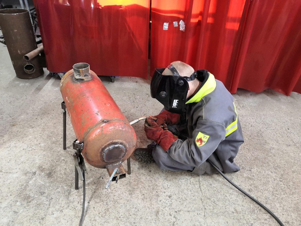 Студенты Железногорского политехнического колледжа, обучающиеся по профессии «Сварщик», изготавливают печки-буржуйки для наших бойцов, находящихся в зоне СВО.