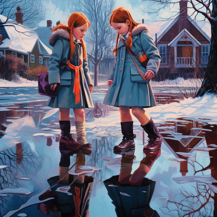 Ботинок опустился на едва схватившуюся за ночь корочку льда. Ирочка и Ксюша шли домой из школы. Второклассницы, обрадованные первым не крепким ещё морозцем ломали хрустящий под подошвами лёд, пачкали обувь в незастывшей под ним грязи и смеялись, смеялись от души. Смысла в их действиях не было никакого, но весело же, забавно!
