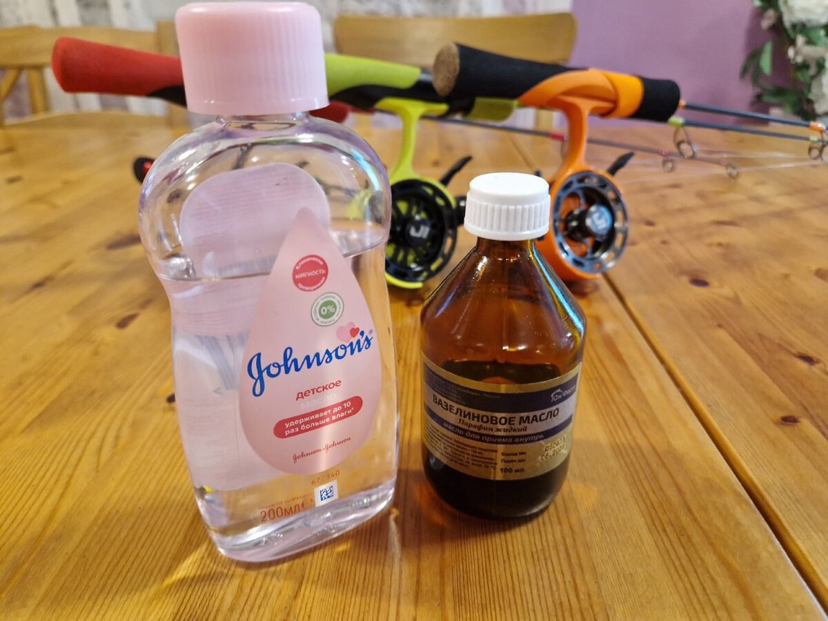 "Чем обработать шнур зимой?" Санкции сподвигли к эксперименту и поиску альтернативы маслу ДжонсонБейби. Бюджетное вазелиновое масло неплохой заменитель, но лучше всего оно показало себя в мороз. Оно более густое и плотное по своей структуре, отлично держится на шнуре на протяжении всего дня и спокойно позволяет эксплуатировать катушку даже в самый сильный мороз и ветер. ‼️Одной пропитки на кануне хватает на весь рыболовный день. 🤪Но есть нюанс - первые сбросы приманки будут тугими и катушка не будет разматываться сама. Не переживайте это нормально, после 3-4 сбросов будет все отлично. В теплую же погоду оно не так эффективно как старый, добрый ДжонсонБейби. Он так и остается одним из лучших масел для обработки, но вот найти его становится сложнее и цена растет как на дрожжах.