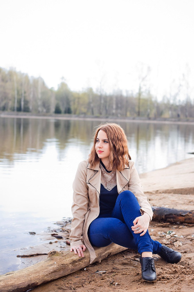 На фотографии запечатлен момент умиротворенной осенней красоты, где девушка встречает последние лучи солнца, сидя на уединенном бревне у берега озера. Осенние листья, окрашенные в разнообразные оттенки желтого, оранжевого и красного, украшают землю, а их отражение на поверхности воды создает волшебное отражение природы. Ее взгляд направлен вдаль, словно она погружена в размышления или просто наслаждается моментом спокойствия. Вокруг нее витает атмосфера тишины, прерываемой лишь мягким плесканием воды и шелестом опавших листьев. Осеннее солнце бросает теплое свечение, проникая сквозь густые ветви деревьев, и создает игру света и тени на лице девушки. Ее волосы колышутся на ветру, а лицо выражает покой и умиротворение. Этот момент, словно картинка природы, переносит зрителя в атмосферу спокойствия и восприятия красоты осеннего пейзажа.