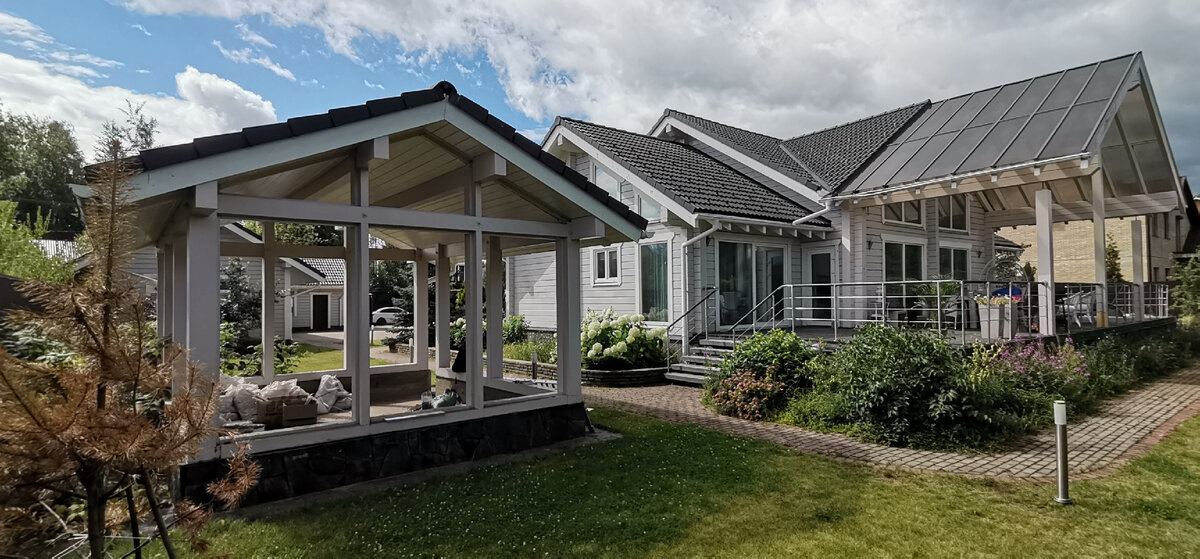 О ужас. Такой красивый дом и в таком печальном состоянии. Клиенты сообщили, что они его купили таким в надежде привести в порядок, но не ожидали что все на столько печально. Сгнившее основание террасы они заменили при помощи гостей из ближнего зарубежья, а на такое они не способны. Вооружившись необходимым инструментом, а тут кроме рулетки, опытного взгляда и крепких пальцев ничего и не пригодилось, я приступил к анализу увечий. Вердикт был печальным. Один угол сгнил полностью, второй на подходе. Стропила стеклянного навеса частично под замену. А чтобы все это реализовать, необходимо полностью перетряхнуть дом. Т.е. снять кровлю с дома и террасы и полностью разобрать стены до основания.