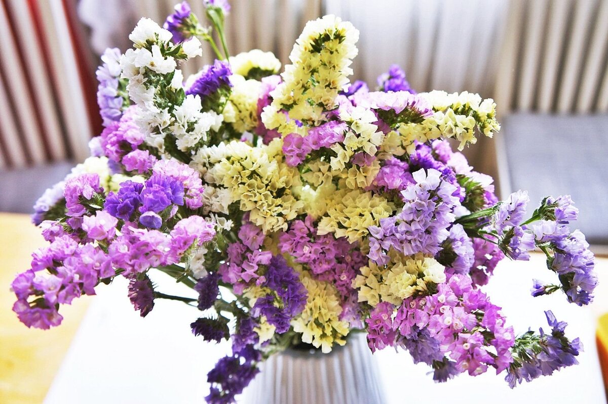 Все цветы по-своему хороши и красивы, но есть среди них еще и практичные! Именно о таких цветах я сегодня и хочу рассказать! Это ничто иное, как статица! Название ей неспроста давалось, соцветия растения действительно статные и бесспорно декоративные. Зацветает статица с начала-середины июля и продолжает украшать собой клумбы до -3 градусов. За эту пору мне удается срезать готовые букеты несколько раз. Что особенно приятно, срезка происходит не выборочная, а прямо под основание куста. Далее использовать букет можно как душе угодно. Если подвязать букет из статицы вверх тормашками в сухом помещении, то через неделю мы получим долгоиграющий красками сухоцвет. Его останется только в вазу поставить, и он будет стоять в сформированной форме пока глазу не надоест. Я лично обновляю такие букеты раз в год. Также статицу можно использовать для всевозможных поделок. К примеру, с внучкой мы сделали вот такую. Минутное дело, зато как красиво! Особенно умелые руки из статицы делают украшени