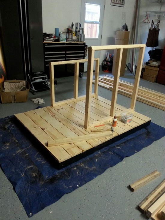 Немного фото, в которых прослеживается строение каркаса будки и, собственно, сам процесс строительства.