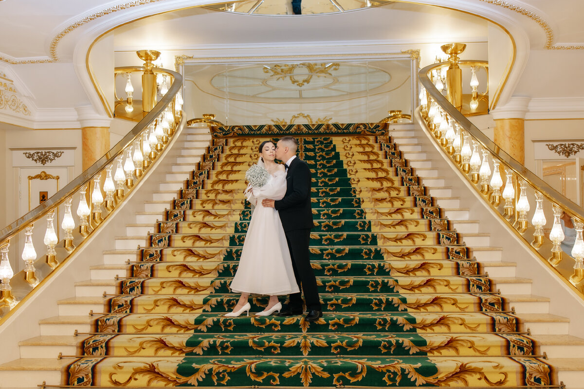 Интерьер ресторана выдержан в дворцовом стиле в бело-золотых тонах, потолки расписаны, много лепнины, мрамора, массивные хрустальные люстры, колонны. И, конечно, шикарная мраморная лестница при входе в Сафису. Особенности регистрации в Сафисе После