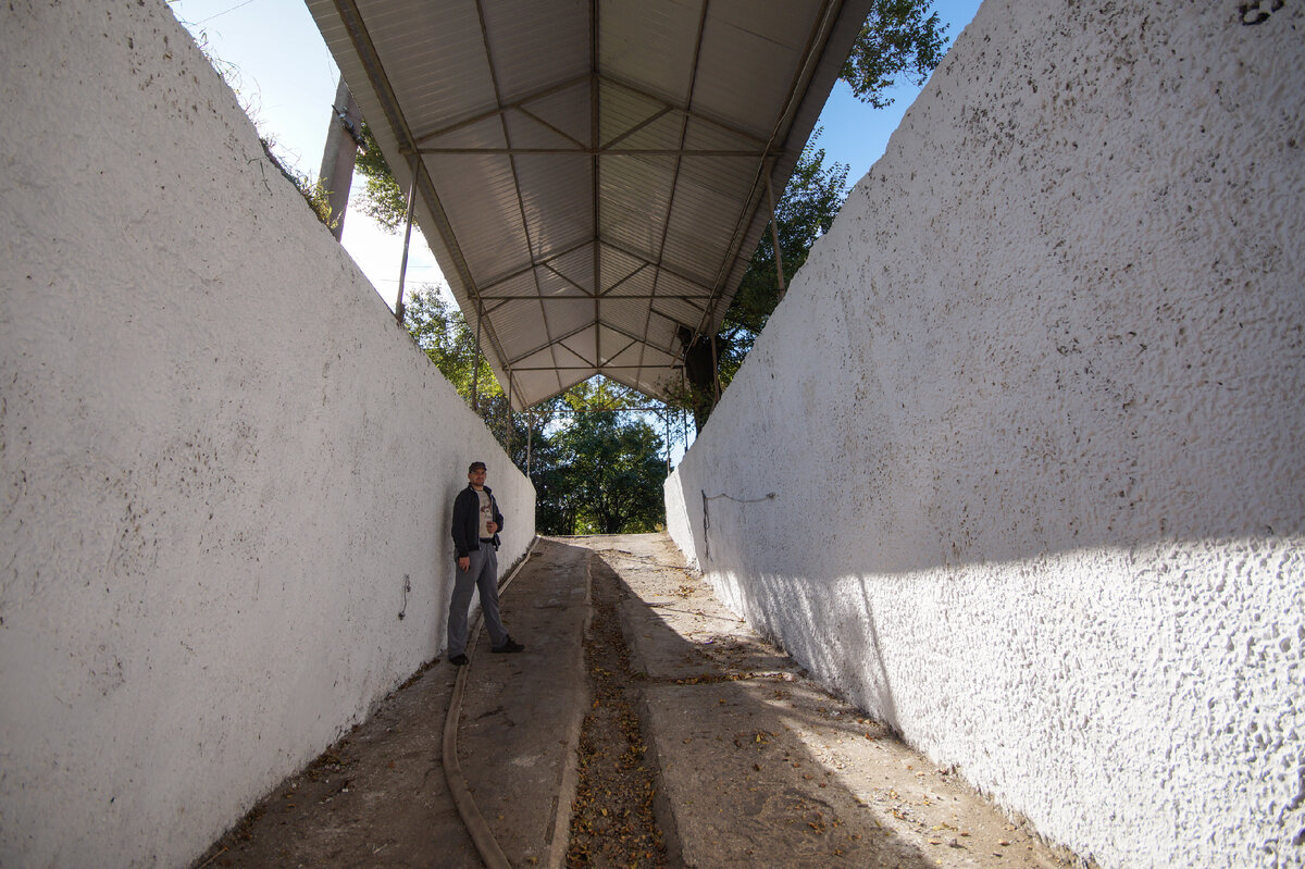 Проходим через такие же защитно-герметические ворота и попадаем в зал для укрываемых, который сейчас используется для автопарковки. Около 35 машин должно помещаться.