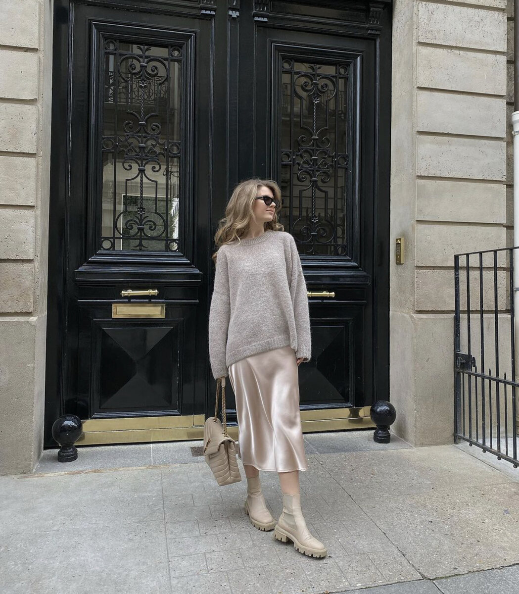 Именно этим правилом руководствуется блогер. Удлиненный серый свитер Первая нейтральная вещь, часто встречающаяся в образах - это самый простой с